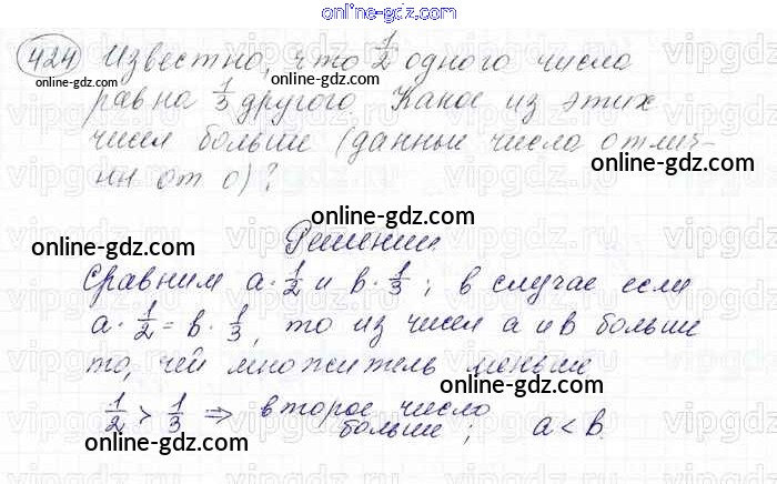 Готовые домашние задания по Математике за 6 класс Учебник Мерзляк, Полонский Алгоритм успеха 2016 - Глава 2. Обыкновенные дроби (упражнения) 424