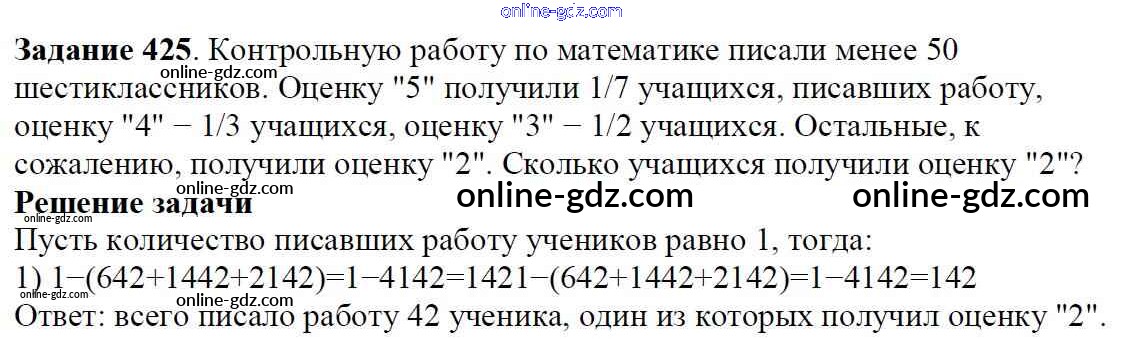 Готовые домашние задания по Математике за 6 класс Учебник Мерзляк, Полонский Алгоритм успеха 2016 - Глава 2. Обыкновенные дроби (упражнения) 425