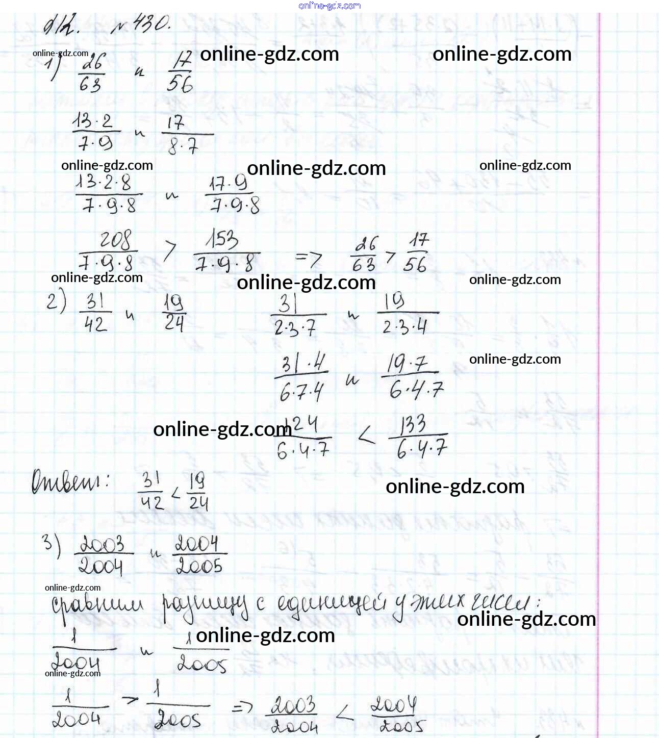 Готовые домашние задания по Математике за 6 класс Учебник Мерзляк, Полонский Алгоритм успеха 2016 - Глава 2. Обыкновенные дроби (упражнения) 430