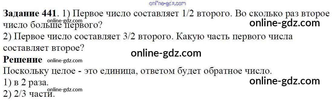 Готовые домашние задания по Математике за 6 класс Учебник Мерзляк, Полонский Алгоритм успеха 2016 - Глава 2. Обыкновенные дроби (упражнения) 441