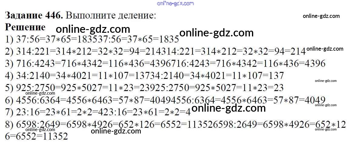 Готовые домашние задания по Математике за 6 класс Учебник Мерзляк, Полонский Алгоритм успеха 2016 - Глава 2. Обыкновенные дроби (упражнения) 446