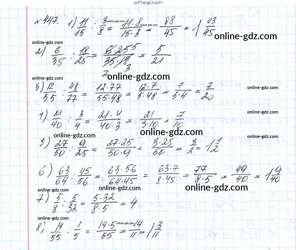 Готовые домашние задания по Математике за 6 класс Учебник Мерзляк, Полонский Алгоритм успеха 2016 - Глава 2. Обыкновенные дроби (упражнения) 447