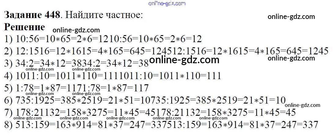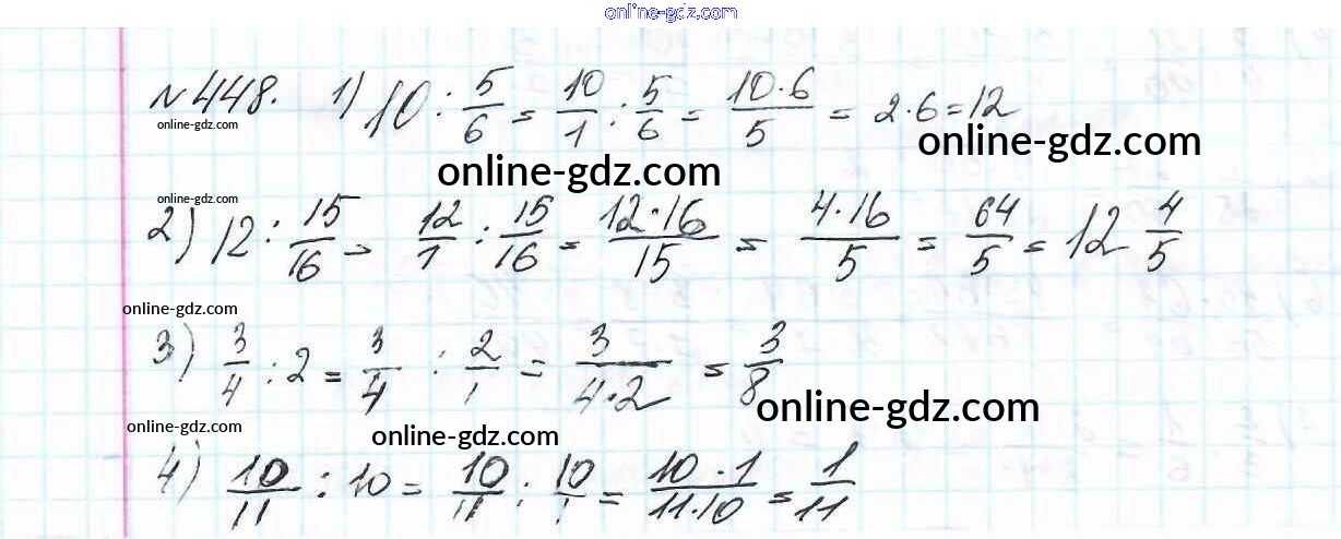 Готовые домашние задания по Математике за 6 класс Учебник Мерзляк, Полонский Алгоритм успеха 2016 - Глава 2. Обыкновенные дроби (упражнения) 448