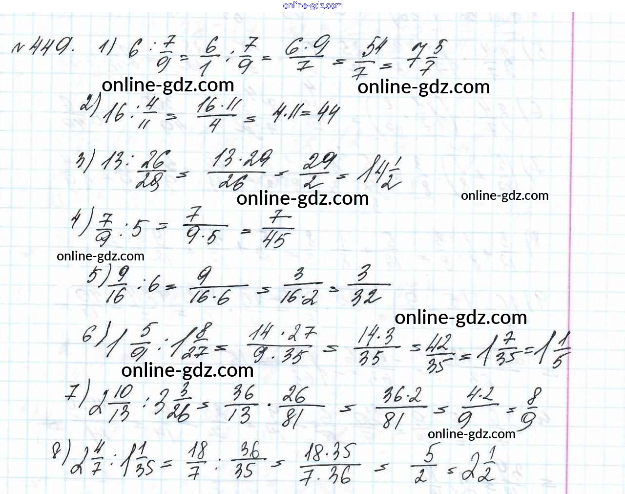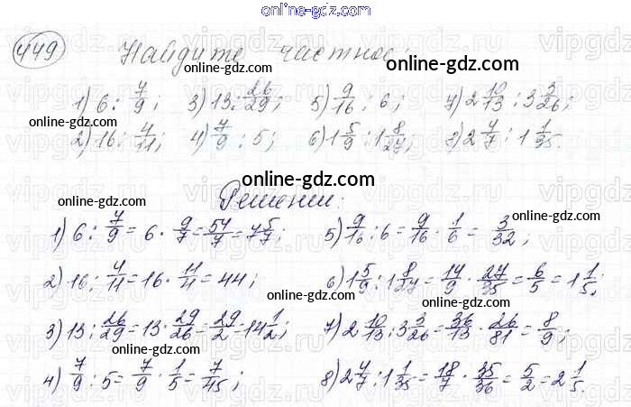 Готовые домашние задания по Математике за 6 класс Учебник Мерзляк, Полонский Алгоритм успеха 2016 - Глава 2. Обыкновенные дроби (упражнения) 449