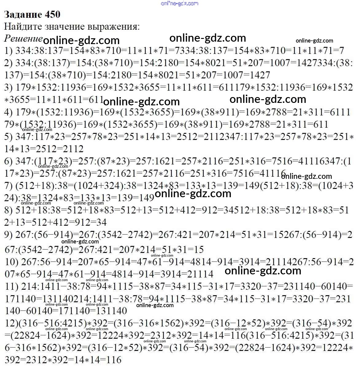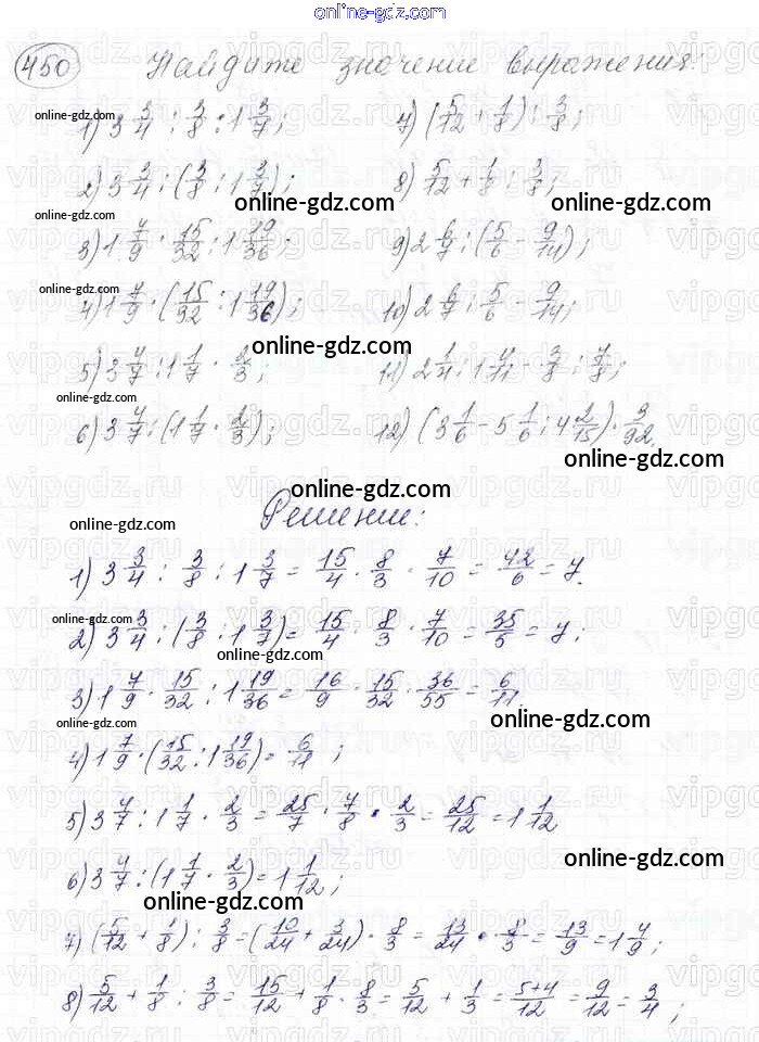 Готовые домашние задания по Математике за 6 класс Учебник Мерзляк, Полонский Алгоритм успеха 2016 - Глава 2. Обыкновенные дроби (упражнения) 450