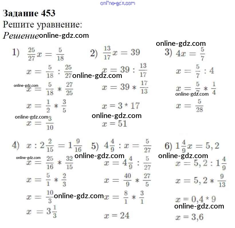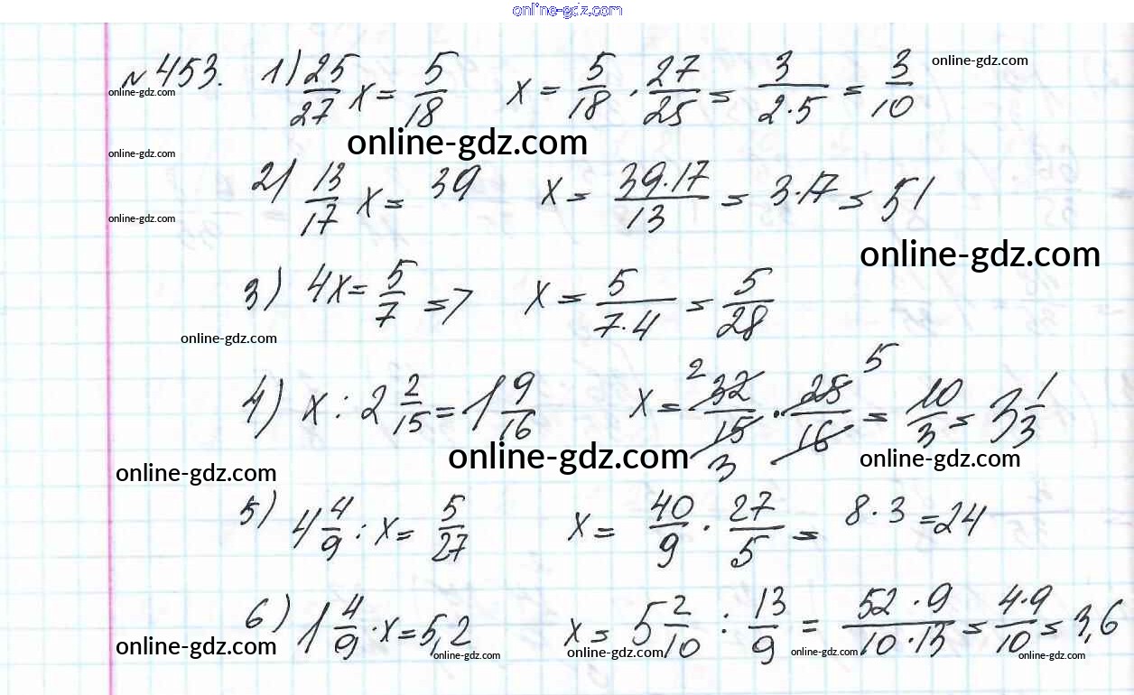 Готовые домашние задания по Математике за 6 класс Учебник Мерзляк, Полонский Алгоритм успеха 2016 - Глава 2. Обыкновенные дроби (упражнения) 453