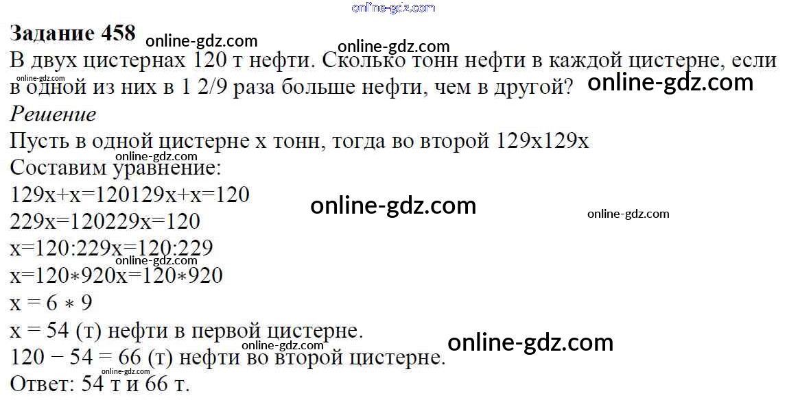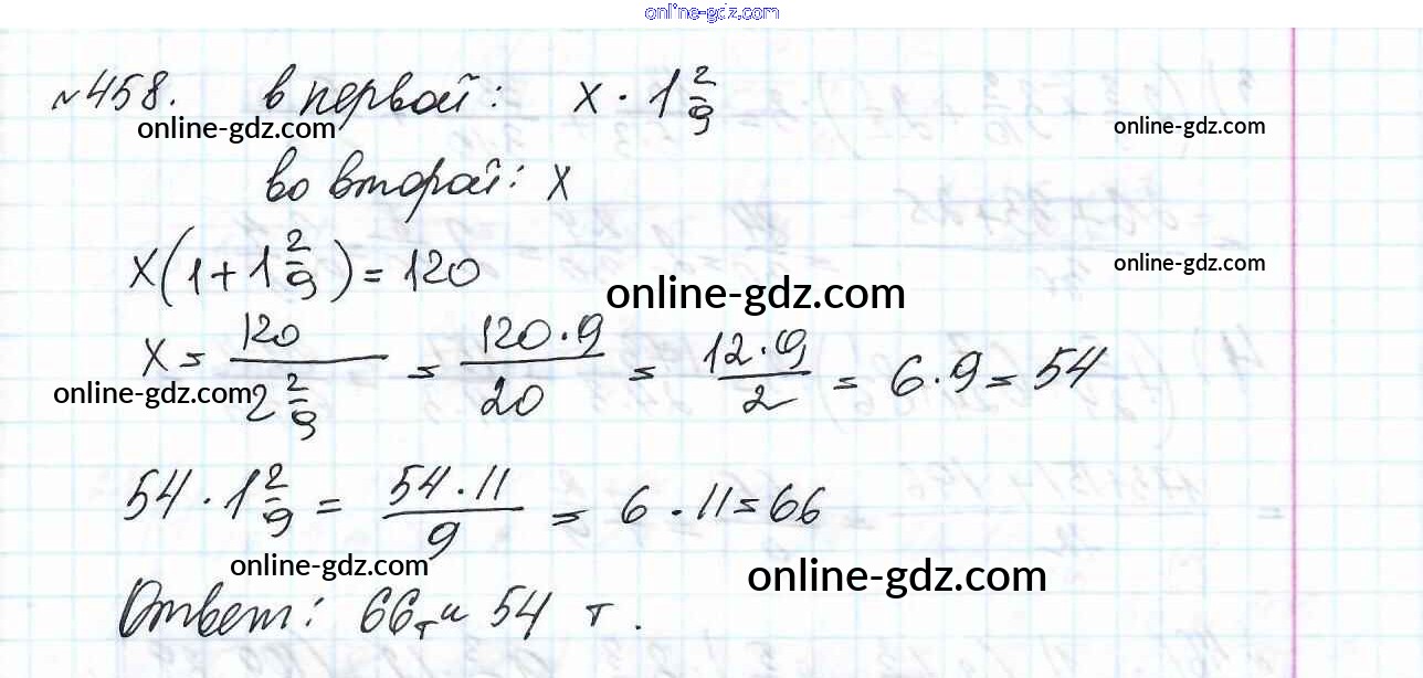 Готовые домашние задания по Математике за 6 класс Учебник Мерзляк, Полонский Алгоритм успеха 2016 - Глава 2. Обыкновенные дроби (упражнения) 458