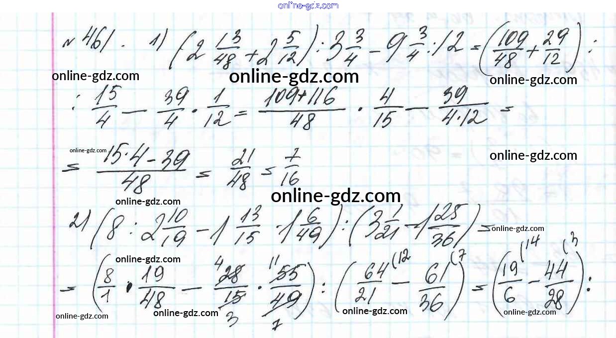 Готовые домашние задания по Математике за 6 класс Учебник Мерзляк, Полонский Алгоритм успеха 2016 - Глава 2. Обыкновенные дроби (упражнения) 461