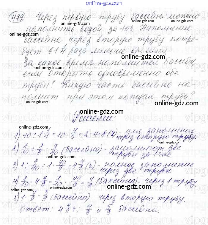 Готовые домашние задания по Математике за 6 класс Учебник Мерзляк, Полонский Алгоритм успеха 2016 - Глава 2. Обыкновенные дроби (упражнения) 479