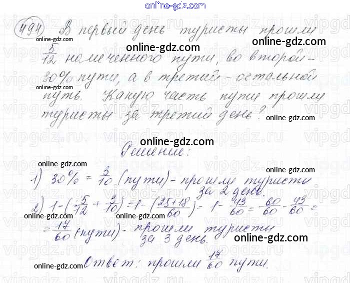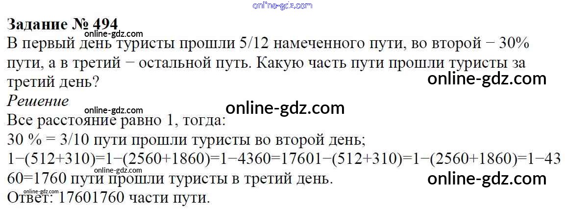 Готовые домашние задания по Математике за 6 класс Учебник Мерзляк, Полонский Алгоритм успеха 2016 - Глава 2. Обыкновенные дроби (упражнения) 494