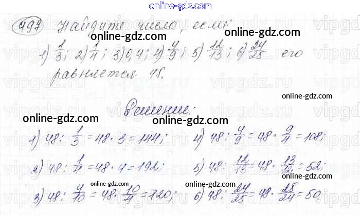 Готовые домашние задания по Математике за 6 класс Учебник Мерзляк, Полонский Алгоритм успеха 2016 - Глава 2. Обыкновенные дроби (упражнения) 497