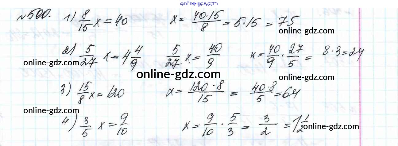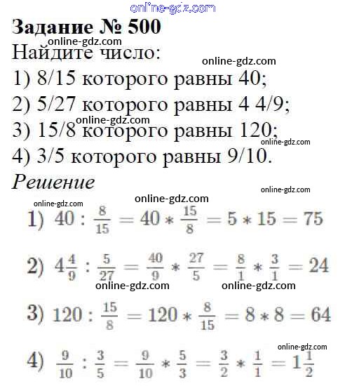 Готовые домашние задания по Математике за 6 класс Учебник Мерзляк, Полонский Алгоритм успеха 2016 - Глава 2. Обыкновенные дроби (упражнения) 500
