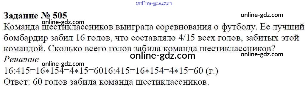 Готовые домашние задания по Математике за 6 класс Учебник Мерзляк, Полонский Алгоритм успеха 2016 - Глава 2. Обыкновенные дроби (упражнения) 505