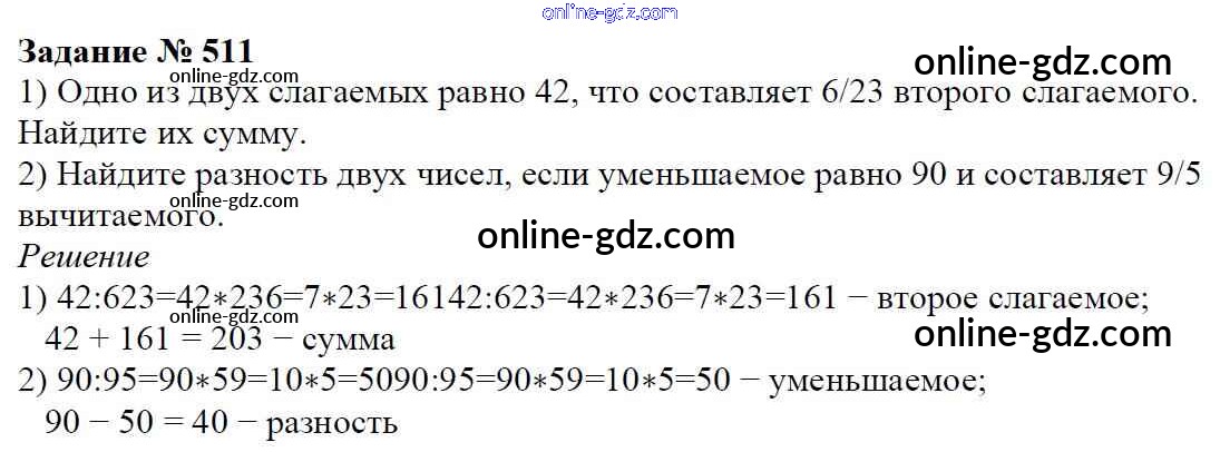 Готовые домашние задания по Математике за 6 класс Учебник Мерзляк, Полонский Алгоритм успеха 2016 - Глава 2. Обыкновенные дроби (упражнения) 511