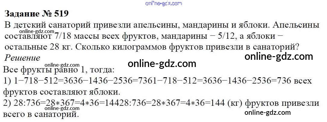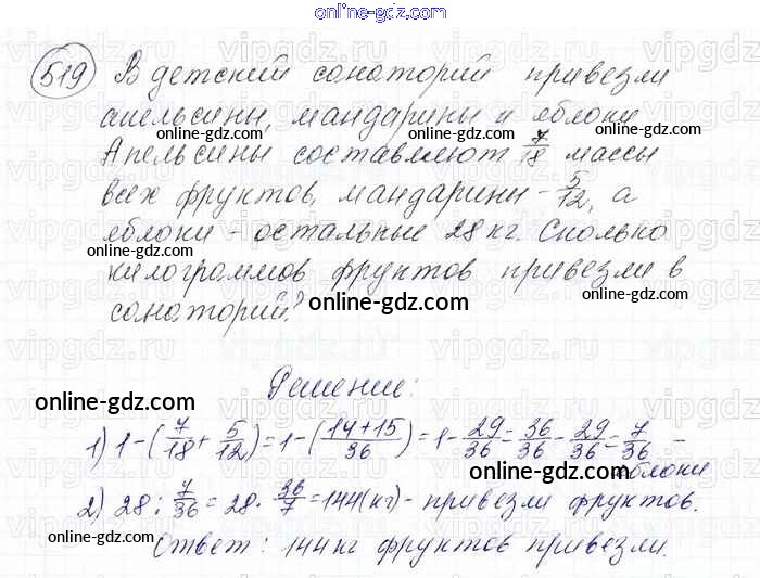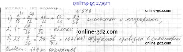 Готовые домашние задания по Математике за 6 класс Учебник Мерзляк, Полонский Алгоритм успеха 2016 - Глава 2. Обыкновенные дроби (упражнения) 519