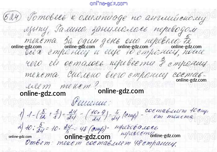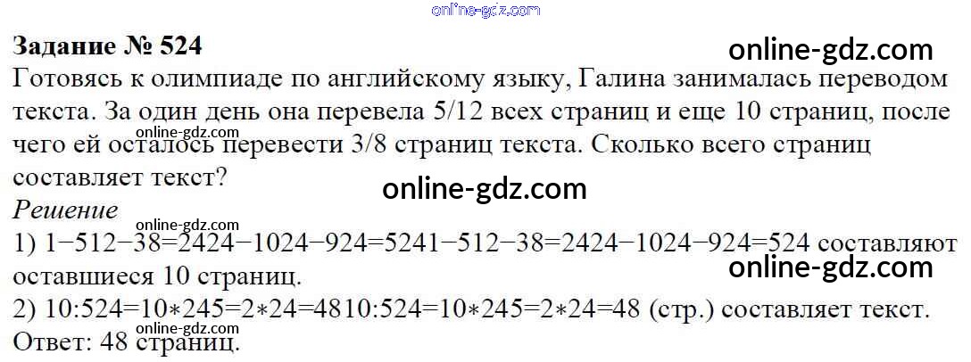 Готовые домашние задания по Математике за 6 класс Учебник Мерзляк, Полонский Алгоритм успеха 2016 - Глава 2. Обыкновенные дроби (упражнения) 524