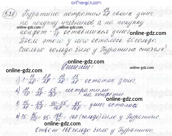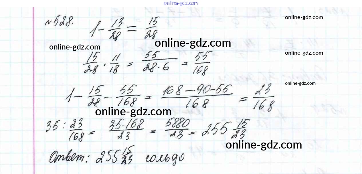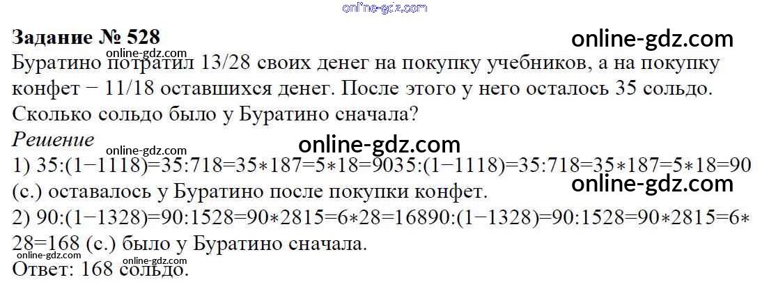 Готовые домашние задания по Математике за 6 класс Учебник Мерзляк, Полонский Алгоритм успеха 2016 - Глава 2. Обыкновенные дроби (упражнения) 528