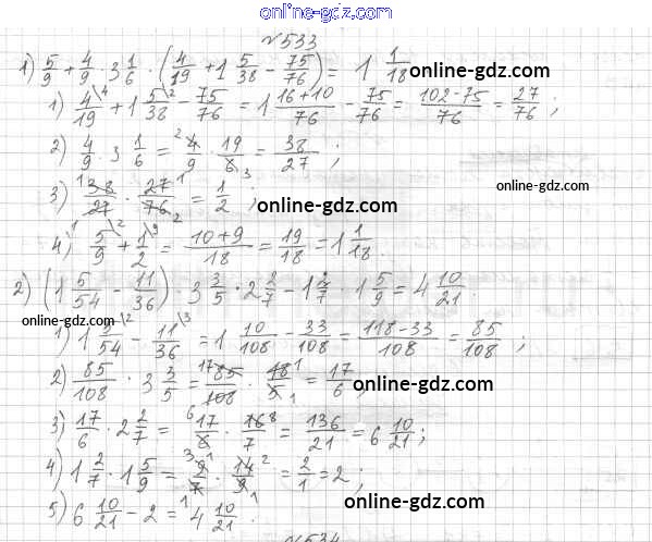 Готовые домашние задания по Математике за 6 класс Учебник Мерзляк, Полонский Алгоритм успеха 2016 - Глава 2. Обыкновенные дроби (упражнения) 533