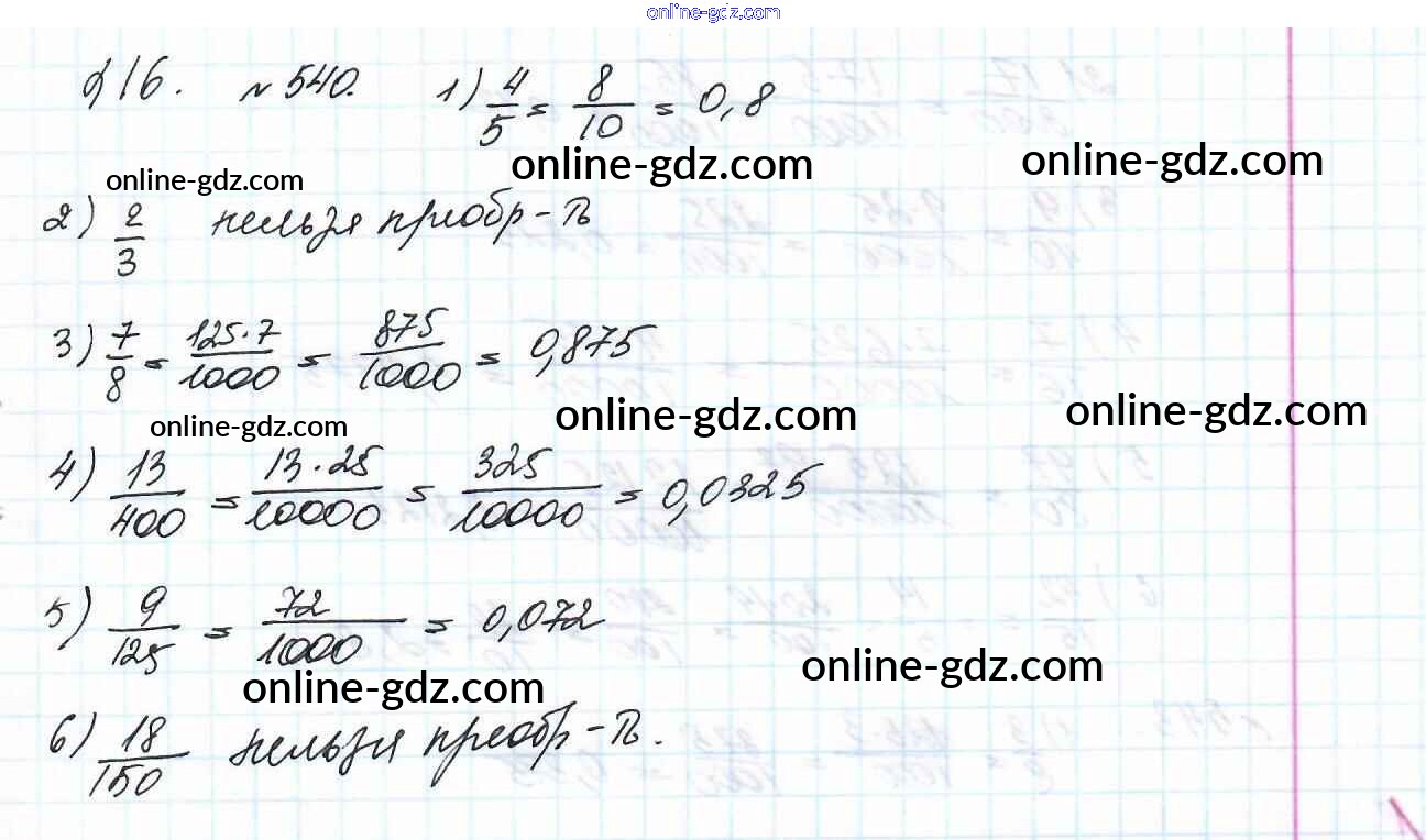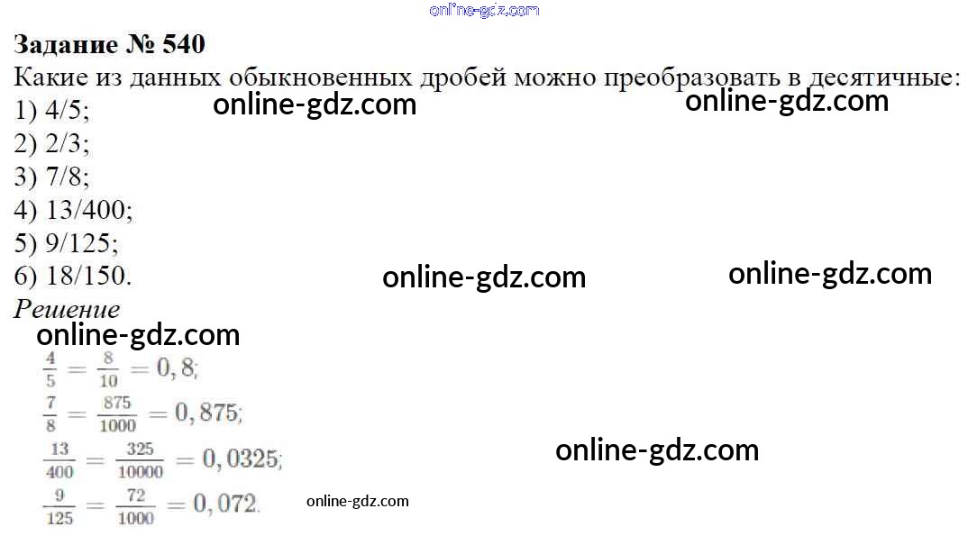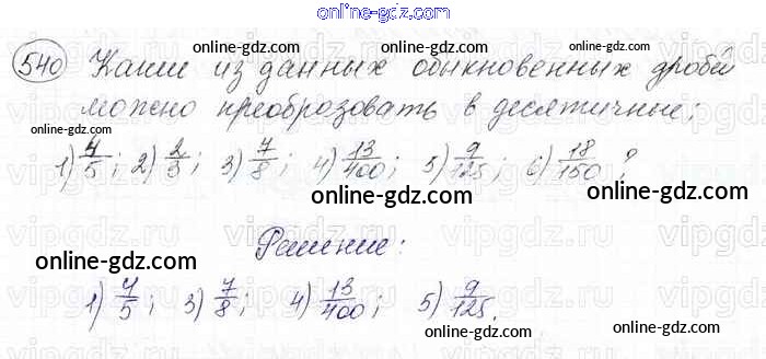 Готовые домашние задания по Математике за 6 класс Учебник Мерзляк, Полонский Алгоритм успеха 2016 - Глава 2. Обыкновенные дроби (упражнения) 540