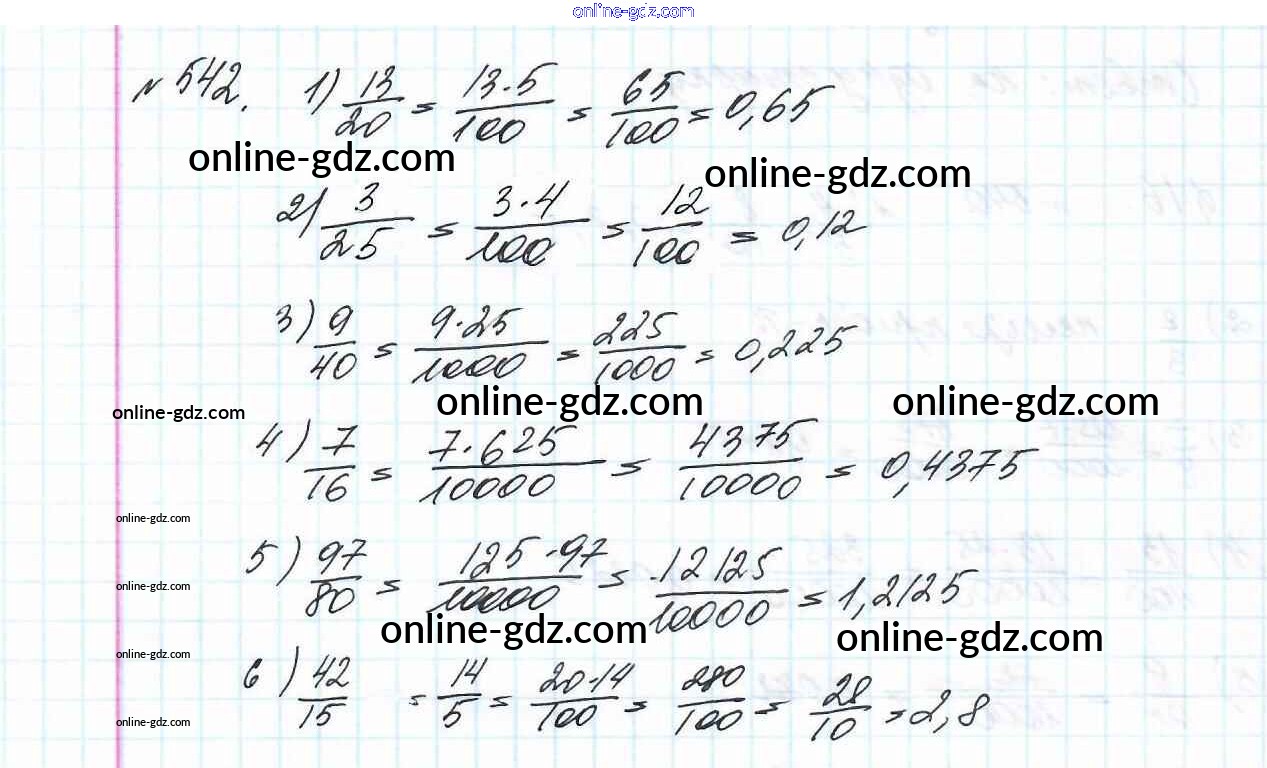 Готовые домашние задания по Математике за 6 класс Учебник Мерзляк, Полонский Алгоритм успеха 2016 - Глава 2. Обыкновенные дроби (упражнения) 542