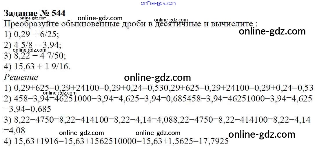 Готовые домашние задания по Математике за 6 класс Учебник Мерзляк, Полонский Алгоритм успеха 2016 - Глава 2. Обыкновенные дроби (упражнения) 544