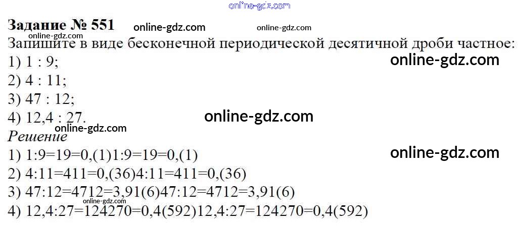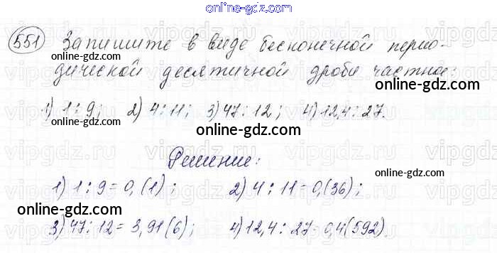 Готовые домашние задания по Математике за 6 класс Учебник Мерзляк, Полонский Алгоритм успеха 2016 - Глава 2. Обыкновенные дроби (упражнения) 551