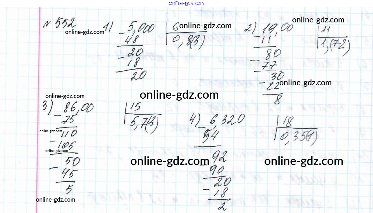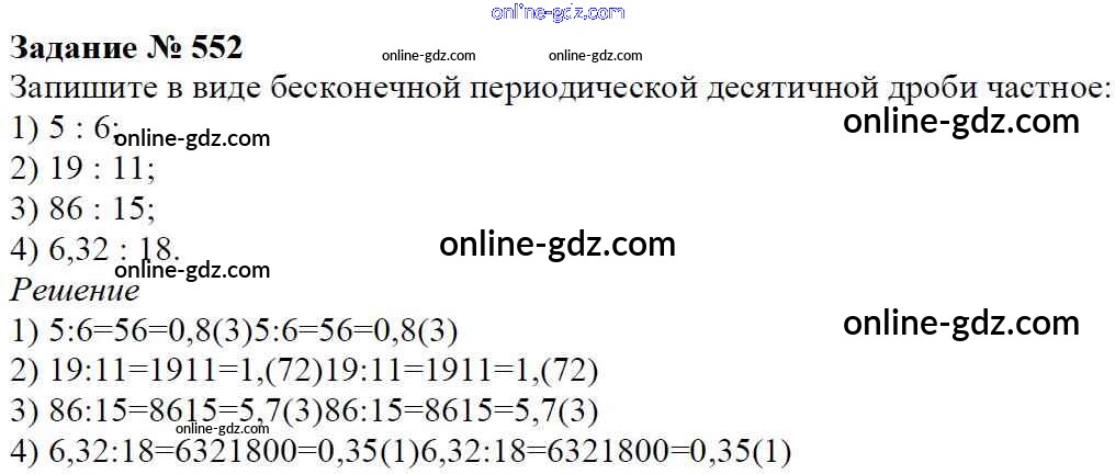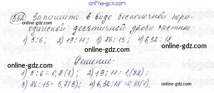 Готовые домашние задания по Математике за 6 класс Учебник Мерзляк, Полонский Алгоритм успеха 2016 - Глава 2. Обыкновенные дроби (упражнения) 552