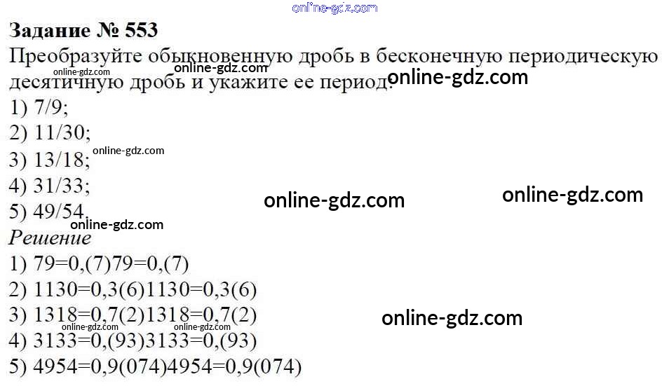 Готовые домашние задания по Математике за 6 класс Учебник Мерзляк, Полонский Алгоритм успеха 2016 - Глава 2. Обыкновенные дроби (упражнения) 553