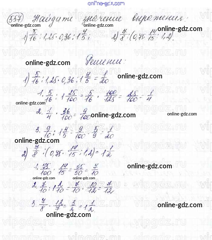 Готовые домашние задания по Математике за 6 класс Учебник Мерзляк, Полонский Алгоритм успеха 2016 - Глава 2. Обыкновенные дроби (упражнения) 557