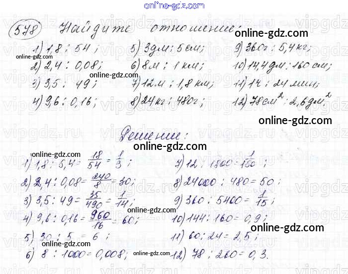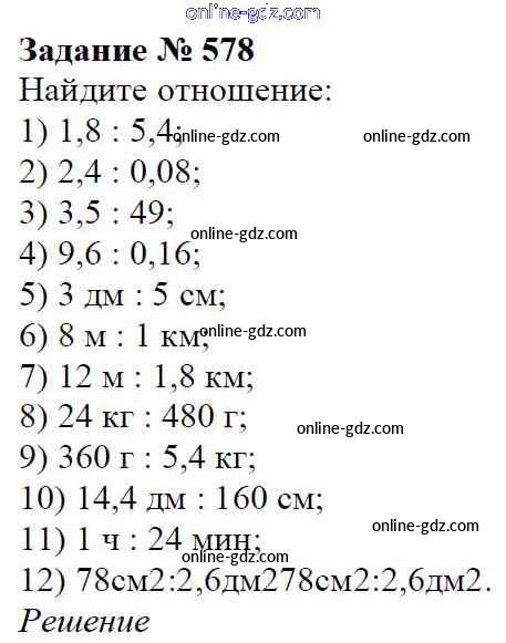 Готовые домашние задания по Математике за 6 класс Учебник Мерзляк, Полонский Алгоритм успеха 2016 - Глава 3. Отношения и пропорции (упражнения) 578