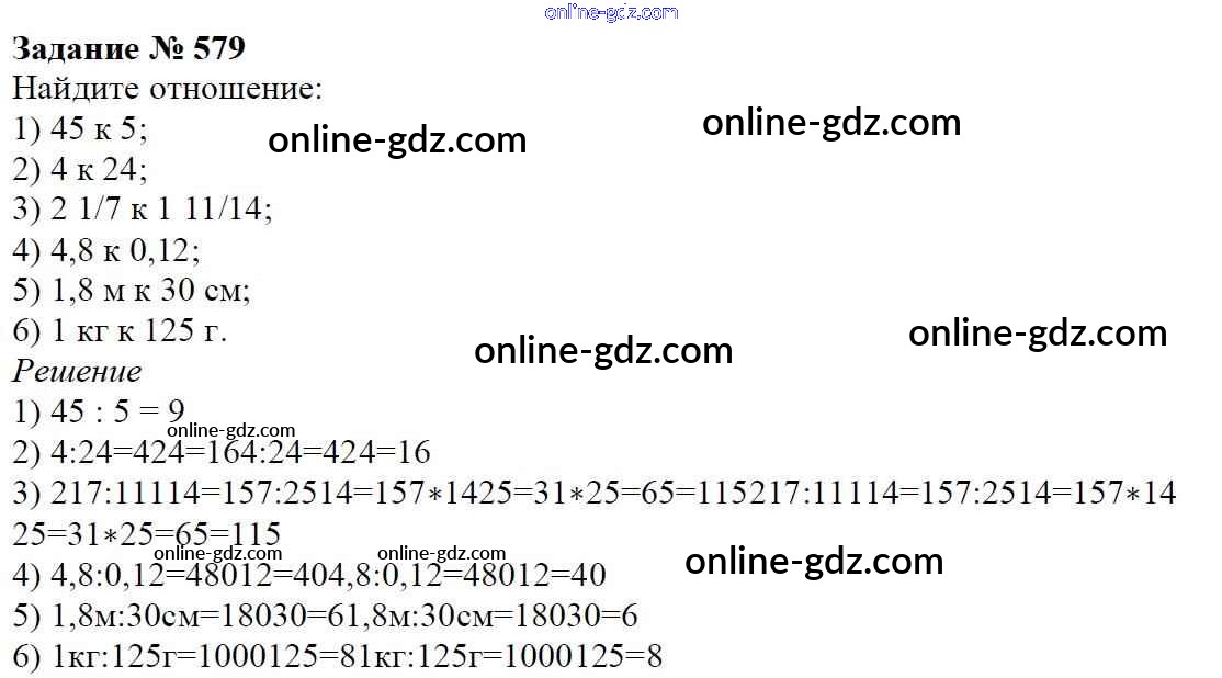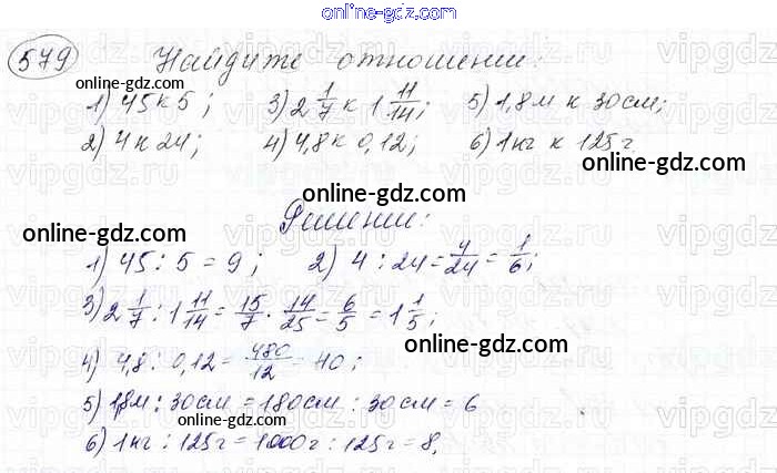 Готовые домашние задания по Математике за 6 класс Учебник Мерзляк, Полонский Алгоритм успеха 2016 - Глава 3. Отношения и пропорции (упражнения) 579