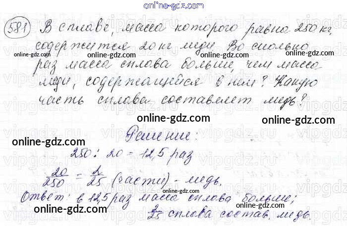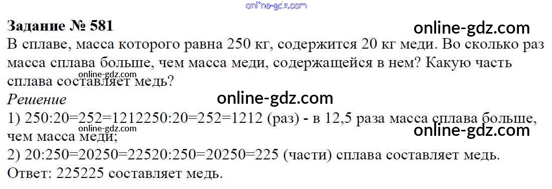 Готовые домашние задания по Математике за 6 класс Учебник Мерзляк, Полонский Алгоритм успеха 2016 - Глава 3. Отношения и пропорции (упражнения) 581