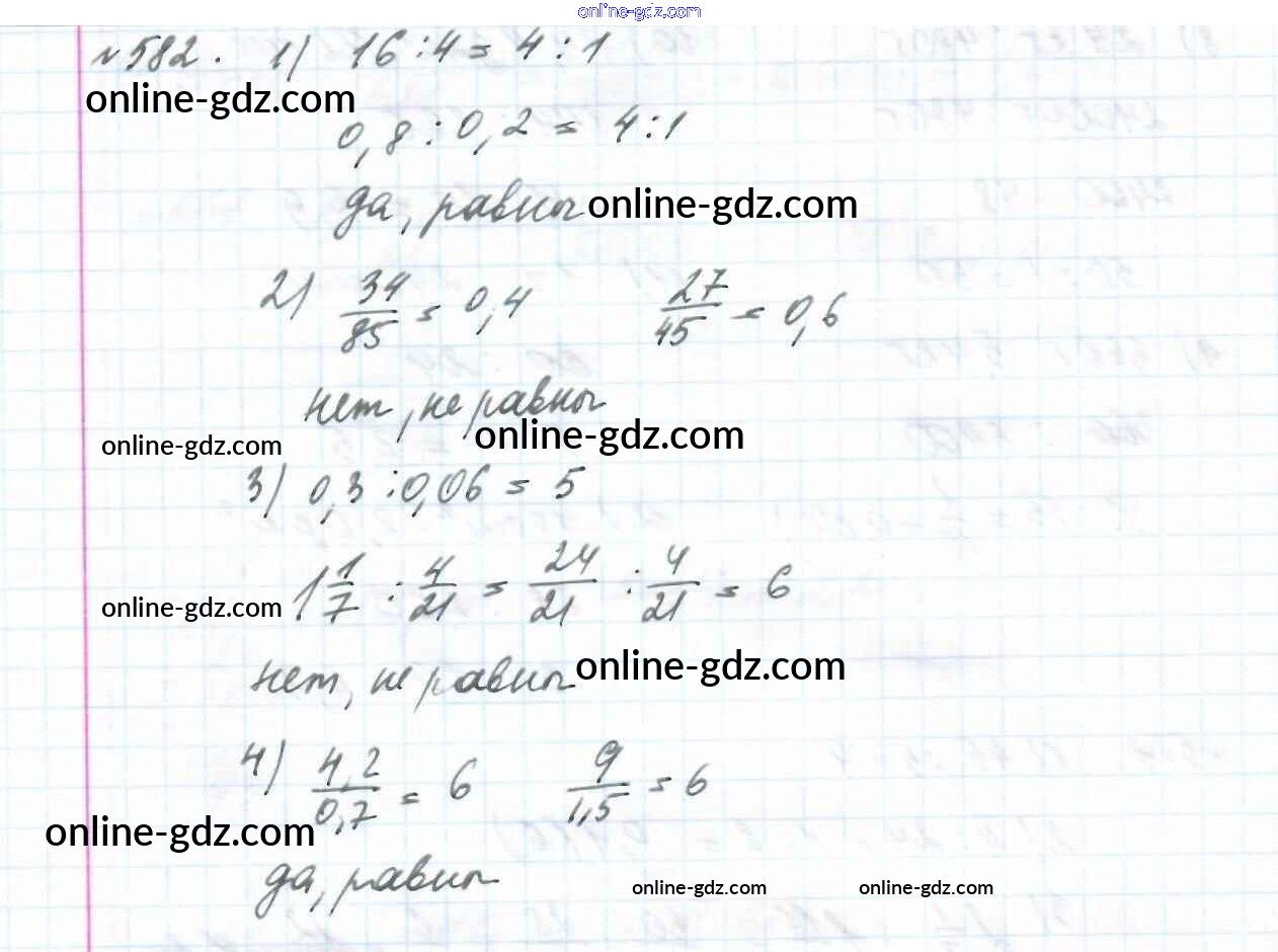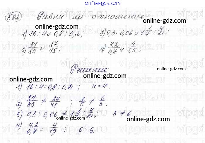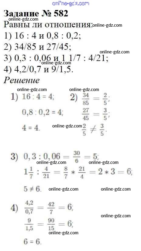 Готовые домашние задания по Математике за 6 класс Учебник Мерзляк, Полонский Алгоритм успеха 2016 - Глава 3. Отношения и пропорции (упражнения) 582