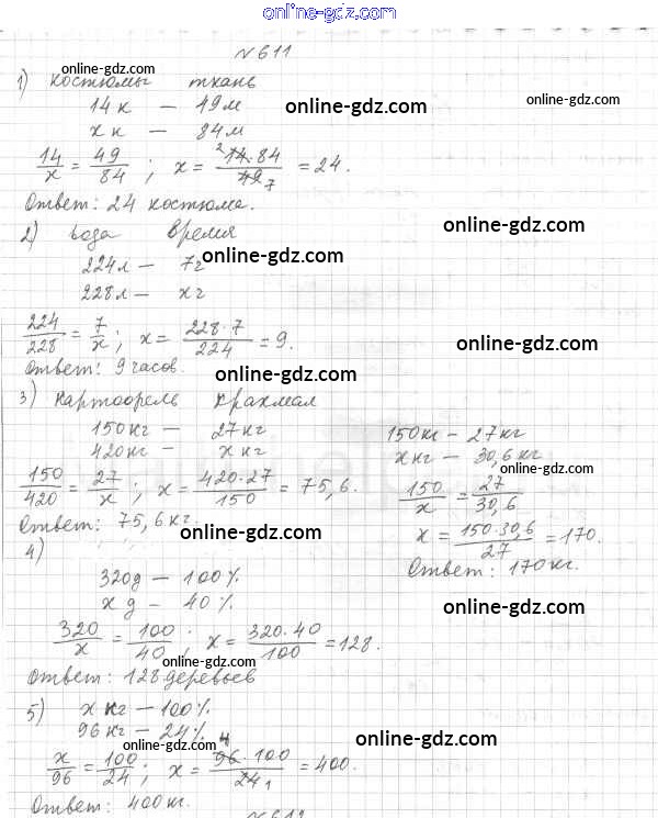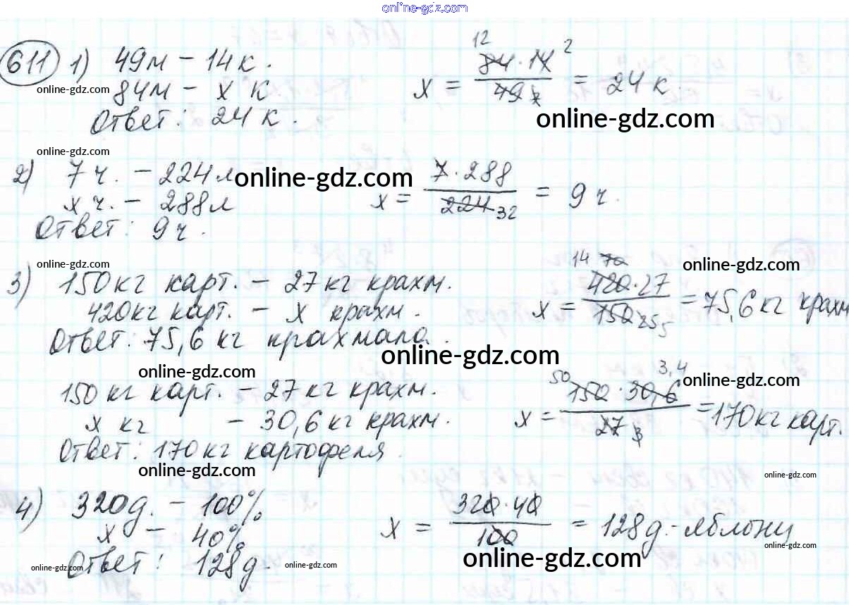 Готовые домашние задания по Математике за 6 класс Учебник Мерзляк, Полонский Алгоритм успеха 2016 - Глава 3. Отношения и пропорции (упражнения) 611