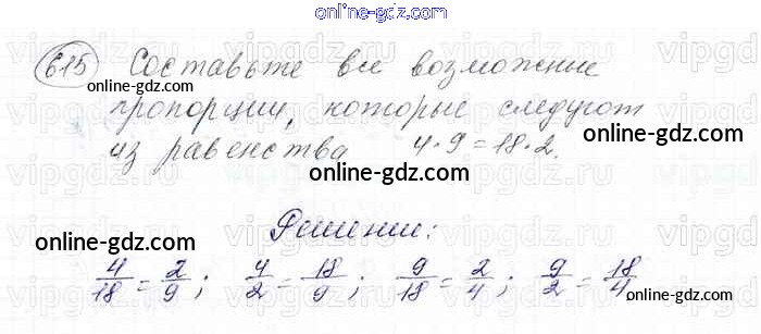Готовые домашние задания по Математике за 6 класс Учебник Мерзляк, Полонский Алгоритм успеха 2016 - Глава 3. Отношения и пропорции (упражнения) 615