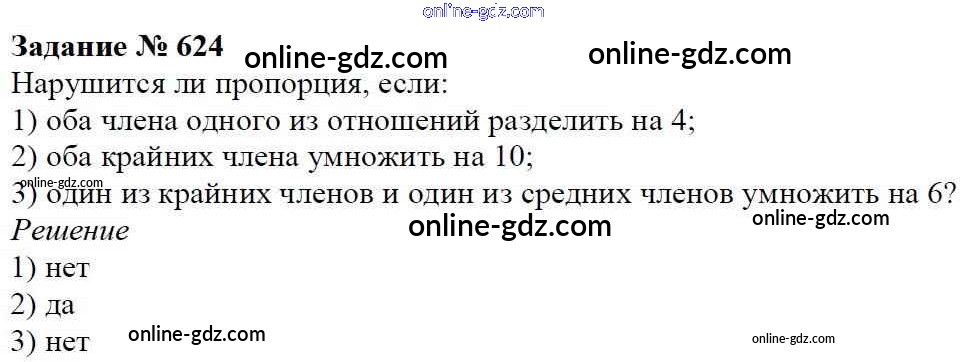 Готовые домашние задания по Математике за 6 класс Учебник Мерзляк, Полонский Алгоритм успеха 2016 - Глава 3. Отношения и пропорции (упражнения) 624