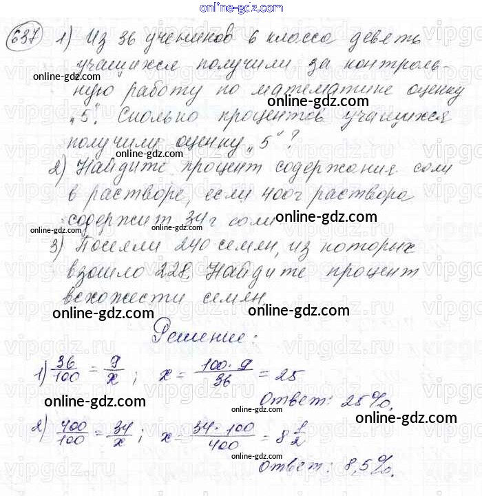 Готовые домашние задания по Математике за 6 класс Учебник Мерзляк, Полонский Алгоритм успеха 2016 - Глава 3. Отношения и пропорции (упражнения) 637