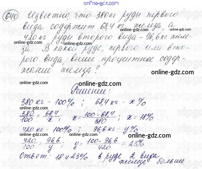 Готовые домашние задания по Математике за 6 класс Учебник Мерзляк, Полонский Алгоритм успеха 2016 - Глава 3. Отношения и пропорции (упражнения) 640