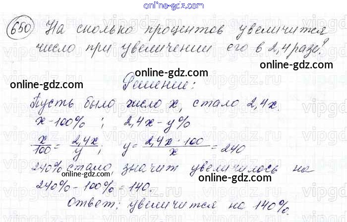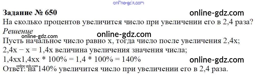 Готовые домашние задания по Математике за 6 класс Учебник Мерзляк, Полонский Алгоритм успеха 2016 - Глава 3. Отношения и пропорции (упражнения) 650