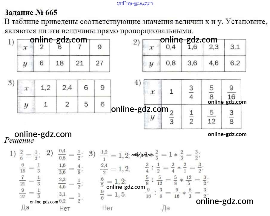 Готовые домашние задания по Математике за 6 класс Учебник Мерзляк, Полонский Алгоритм успеха 2016 - Глава 3. Отношения и пропорции (упражнения) 665