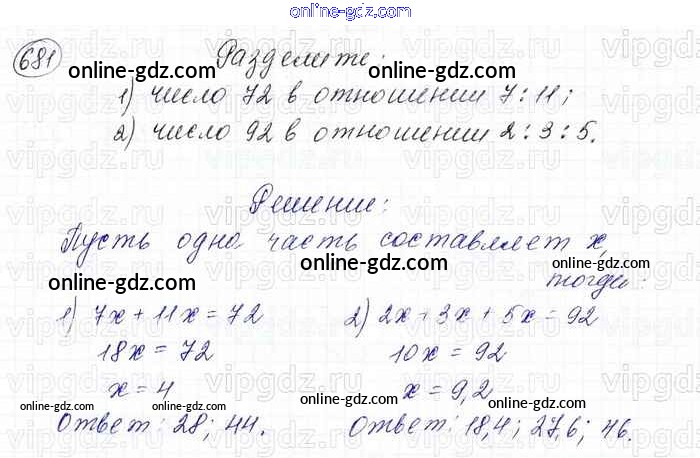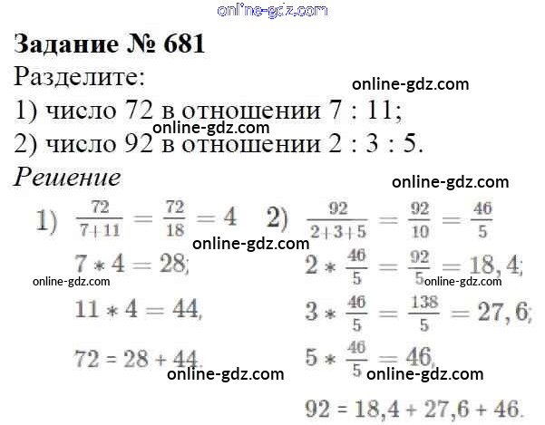 Готовые домашние задания по Математике за 6 класс Учебник Мерзляк, Полонский Алгоритм успеха 2016 - Глава 3. Отношения и пропорции (упражнения) 681