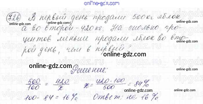 Готовые домашние задания по Математике за 6 класс Учебник Мерзляк, Полонский Алгоритм успеха 2016 - Глава 3. Отношения и пропорции (упражнения) 726