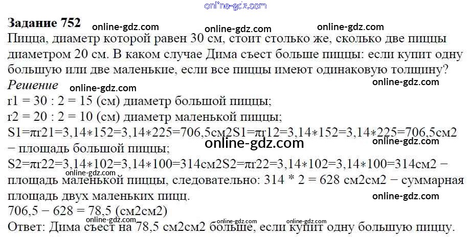Готовые домашние задания по Математике за 6 класс Учебник Мерзляк, Полонский Алгоритм успеха 2016 - Глава 3. Отношения и пропорции (упражнения) 752