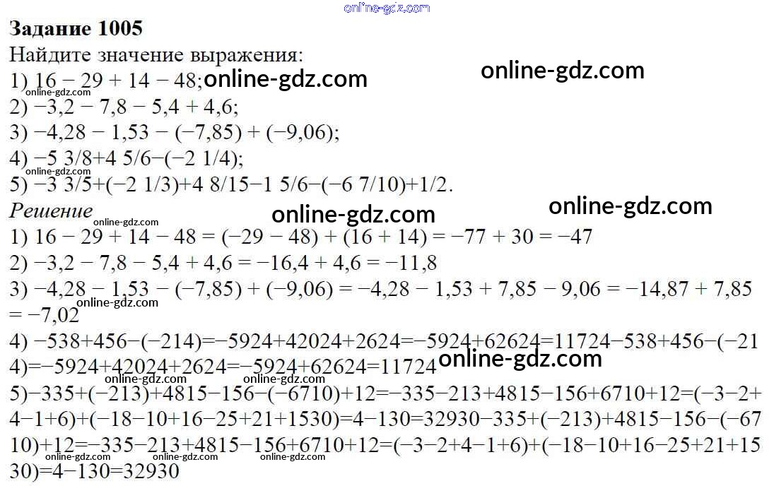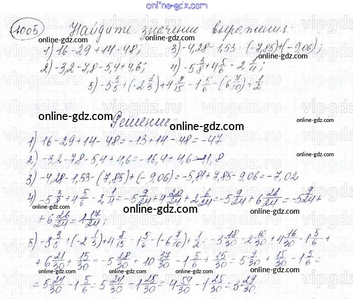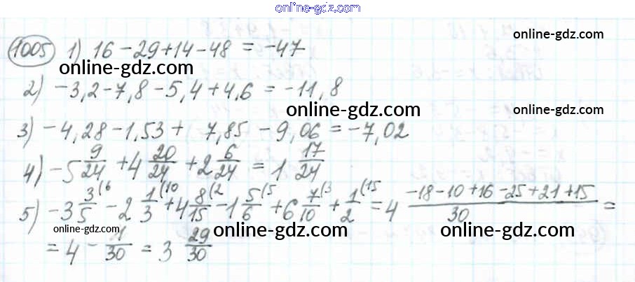 Готовые домашние задания по Математике за 6 класс Учебник Мерзляк, Полонский Алгоритм успеха 2016 - Глава 4. Рациональные числа и действия над ними (упражнения) 1005