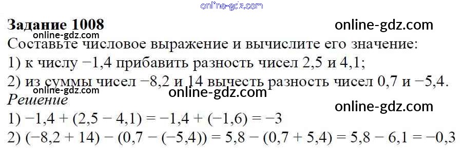 Готовые домашние задания по Математике за 6 класс Учебник Мерзляк, Полонский Алгоритм успеха 2016 - Глава 4. Рациональные числа и действия над ними (упражнения) 1008