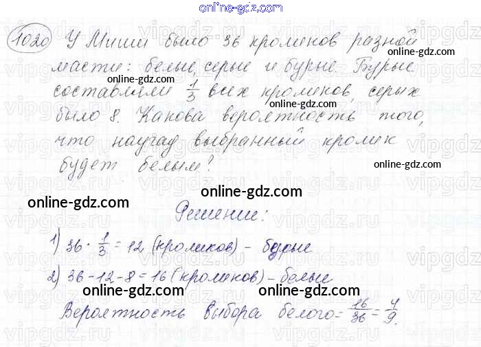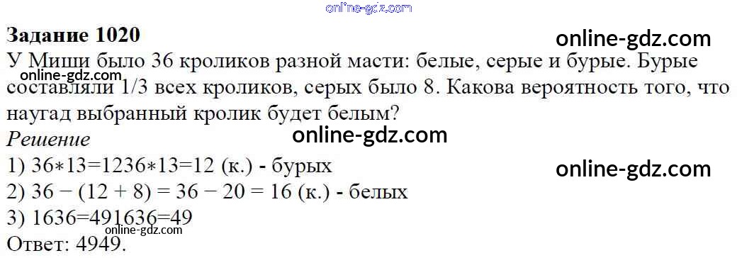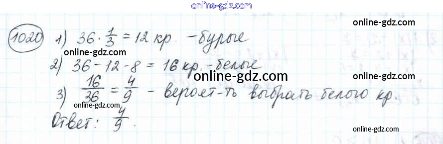 Готовые домашние задания по Математике за 6 класс Учебник Мерзляк, Полонский Алгоритм успеха 2016 - Глава 4. Рациональные числа и действия над ними (упражнения) 1020