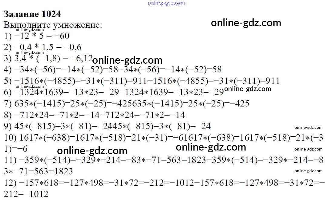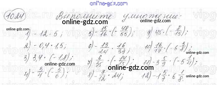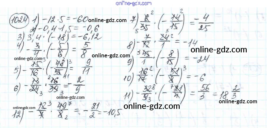 Готовые домашние задания по Математике за 6 класс Учебник Мерзляк, Полонский Алгоритм успеха 2016 - Глава 4. Рациональные числа и действия над ними (упражнения) 1024