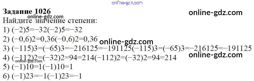 Готовые домашние задания по Математике за 6 класс Учебник Мерзляк, Полонский Алгоритм успеха 2016 - Глава 4. Рациональные числа и действия над ними (упражнения) 1026