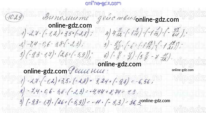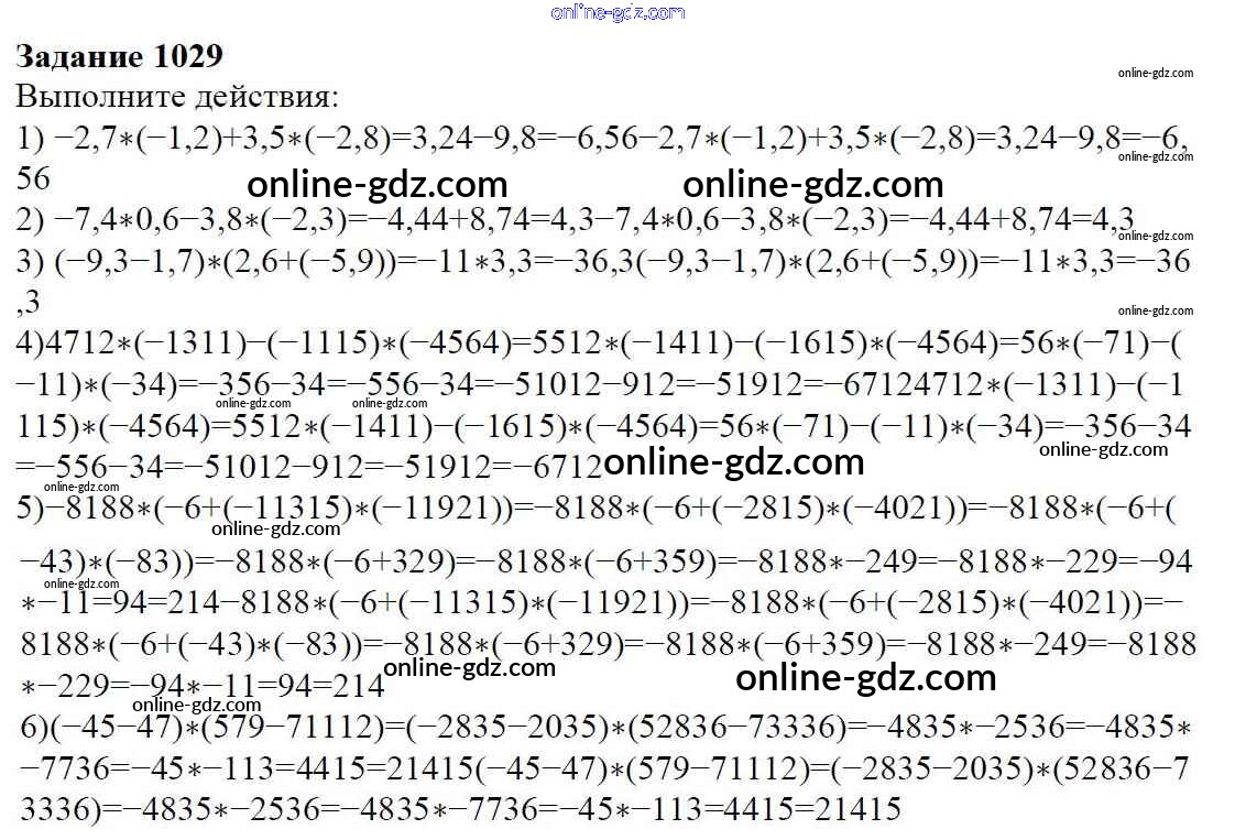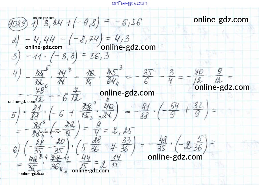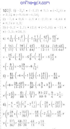 Готовые домашние задания по Математике за 6 класс Учебник Мерзляк, Полонский Алгоритм успеха 2016 - Глава 4. Рациональные числа и действия над ними (упражнения) 1029