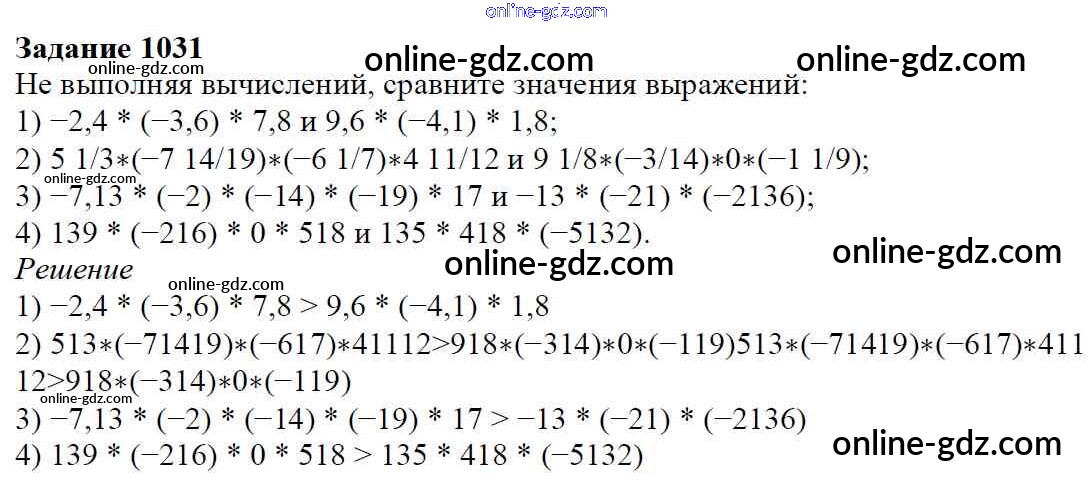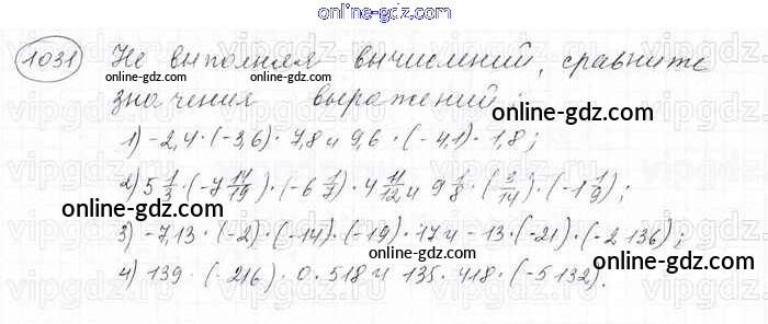Готовые домашние задания по Математике за 6 класс Учебник Мерзляк, Полонский Алгоритм успеха 2016 - Глава 4. Рациональные числа и действия над ними (упражнения) 1031